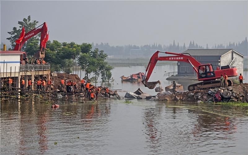第四步是突击合龙。当两端封堵接近中间时,进行突击合龙作业。这一步骤需要迅速而准确地完成,以确保决口完全封闭。前面四步是决口封堵最重要的环节,前四步完成了后,方可视为洞庭湖决口抢险救援工作基本完成。