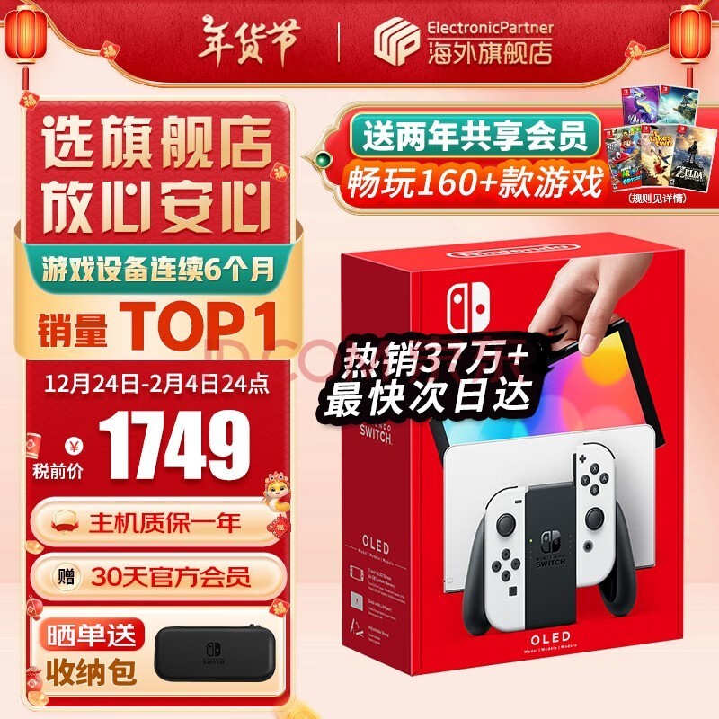 任天堂(Nintendo)Switch OLED/续航加强日版/港版便携家用ns体感游戏掌机 日版OLED白色64GB(加赠2年会员)