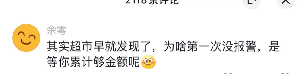 @余雩: 其实超市早就发现了,为啥第一次没报警,是等你累计够金额呢[不失礼貌的微笑]