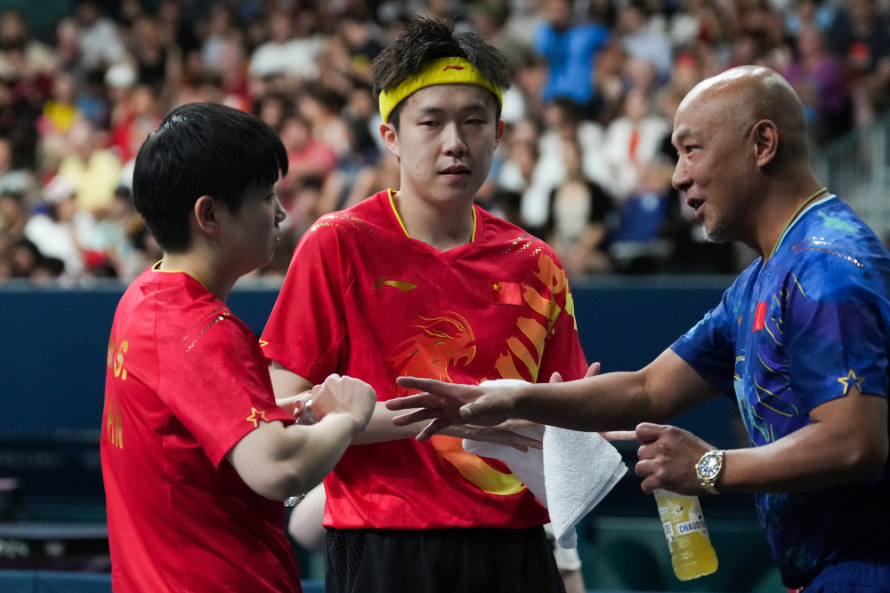 针对王楚钦的状态低迷,搭档孙颖莎和国乒场外指导肖战教练都在不断安慰他,而王楚钦也很快做出了积极的回应,与孙颖莎一起迅速压制对手,随即以11-5拿下第四局,双方再次回到同一起跑线。
