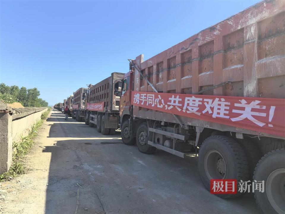 5日下午,陈先生车队的18台车全部装满砂石后,浩浩荡荡地向华容县进发。当晚9时许,经过5个多小时的行驶,车队抵达华容县,开始排队进入大堤决口处。由于决口处工作面较小,一次性进入的大车有限,陈先生车队不得不依次排队进入。一直到6日上午10时左右,终于卸下这一车50余吨的砂石。