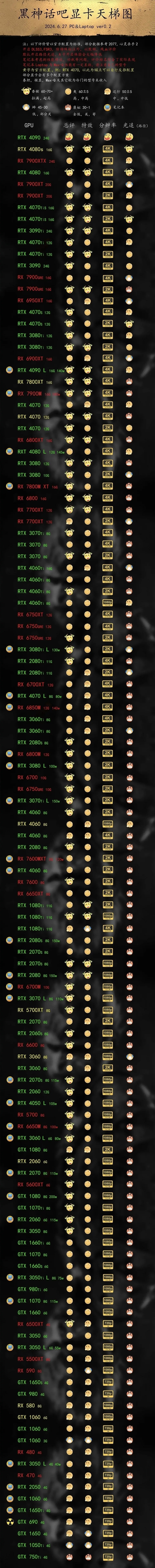 随着《黑神话:悟空》的临近发售,玩家们对于游戏性能和配置要求的关注也在不断升温。近日,黑神话吧发布了一张针对热门游戏《黑神话:悟空》的显卡天梯图,在玩家群体中引起了广泛关注和热烈讨论。这张天梯图以直观的方式展示了不同显卡在运行《黑神话:悟空》时的性能表现,话不多说,直接放图,感兴趣的可以看一看。
