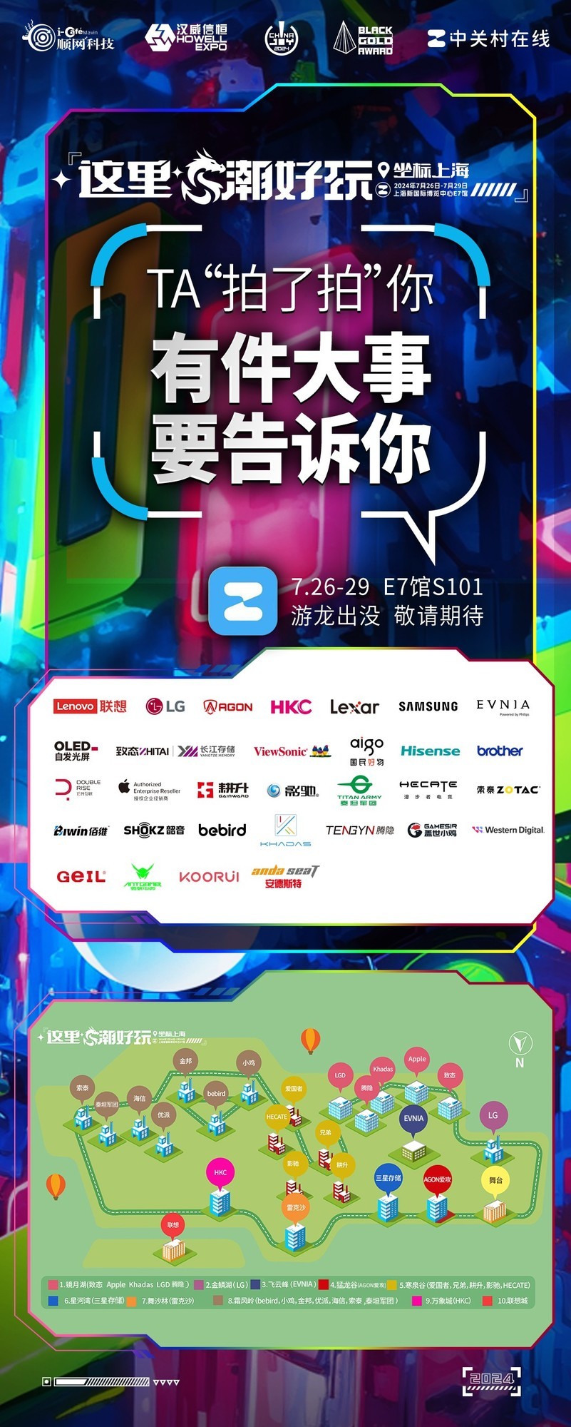 2024 ChinaJoy“这里潮好玩”将于上海国际博览中心E7馆S101打造超大综合展区,展区汇集平板电脑、DIY攒机、智能家居、影音娱乐等众多玩家关注的黑科技。