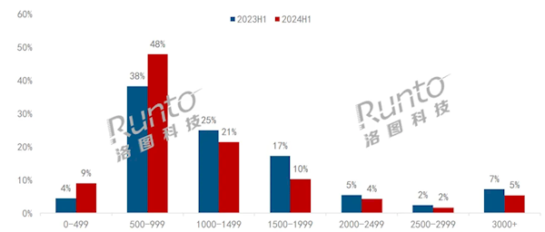同时,500-999元的价格区间也展现出强劲的增长势头。今年上半年,该价位段的市场份额达到了48%,比去年增加了10个百分点。这主要得益于国内品牌KTC、SANC、科睿在价格竞争中的优势以及由此带来的销售增长。