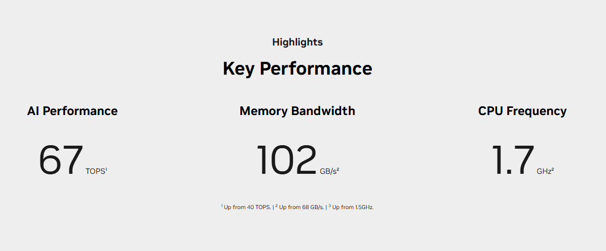 本次更新,包含现有的JetsonOrin NX和OrinNano系列模组设备也可以通过软件更新的方式获AI性能的提升。