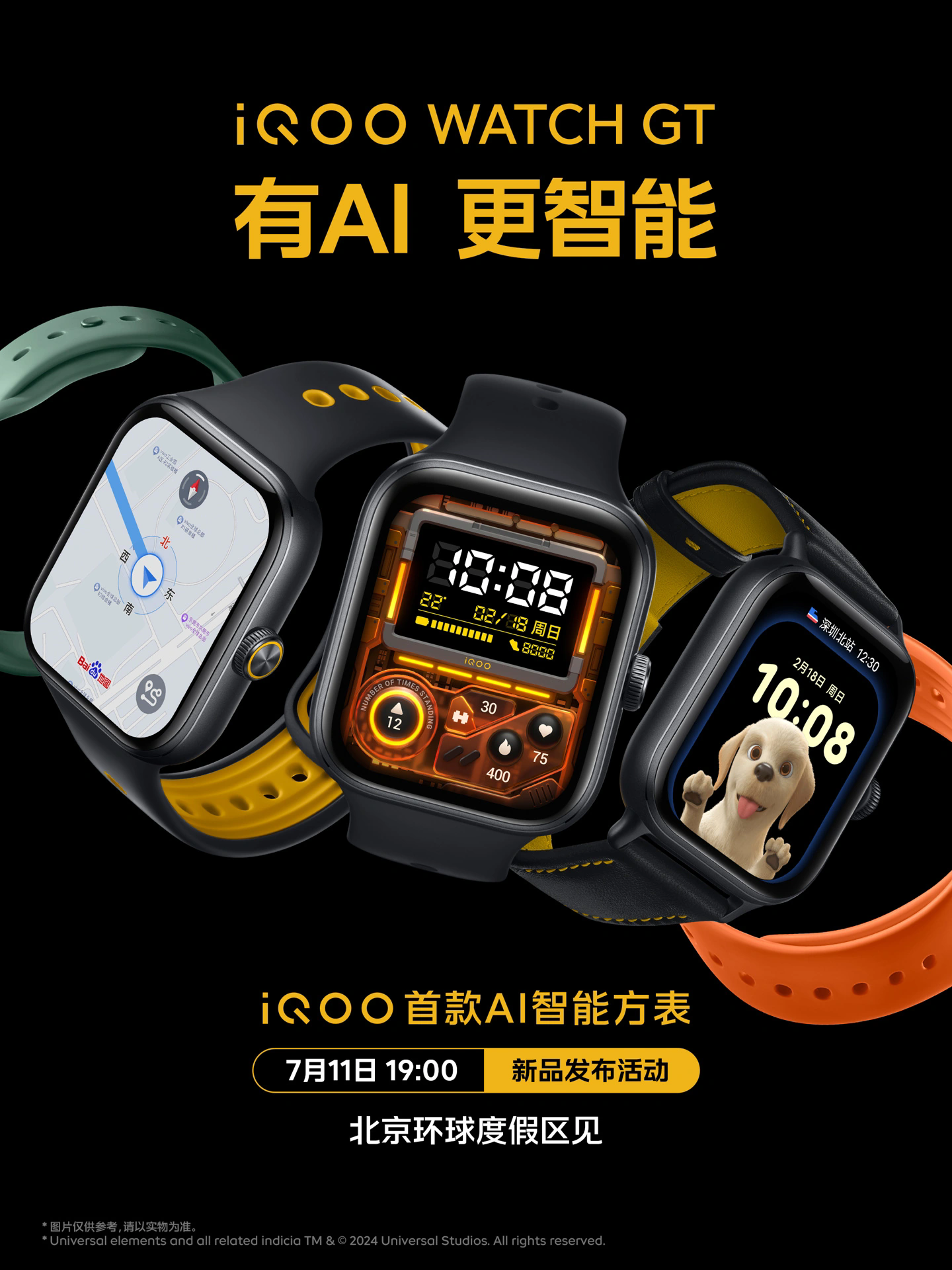 备受瞩目的 iQOO WATCH GT将于7月11日19:00在北京环球度假区正式亮相,成为iQOO首款AI方形智能手表。这款产品是该品牌在智能穿戴设备领域的全新布局。