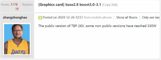 消息人士进一步透露了该显卡的规格信息。公版TDP范围约为260W至270W,而非公版型号可能会提升至330W。此外,显卡的GPU基准频率为2.8GHz,最高加速频率可达3.0GHz至3.1GHz。