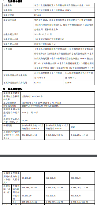 募集期间净认购金额3,689,205,117.59元,认购资金在募集期间产生的利息935,876.01元,募集份额合计3,690,140,993.60份。