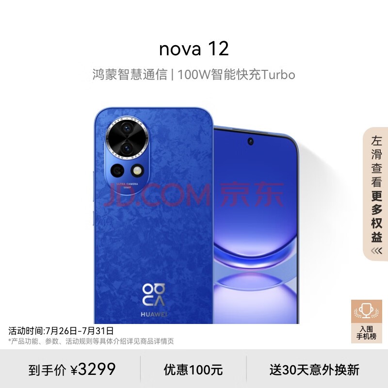 华为nova 12 100W智能快充Turbo 前置6000万4K超广角人像 512GB 12号色 鸿蒙智慧通信华为智能手机