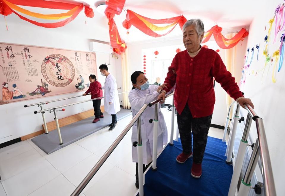 在河北省香河县安平镇运河新村医养中心,老年人在进行康复训练(2024年2月29日摄)。新华社记者 王晓 摄