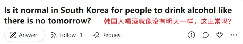 评论区的韩国网友热情地告诉他,如果你实在不想喝,就可以不喝——毕竟你不是归人,只是过客。
