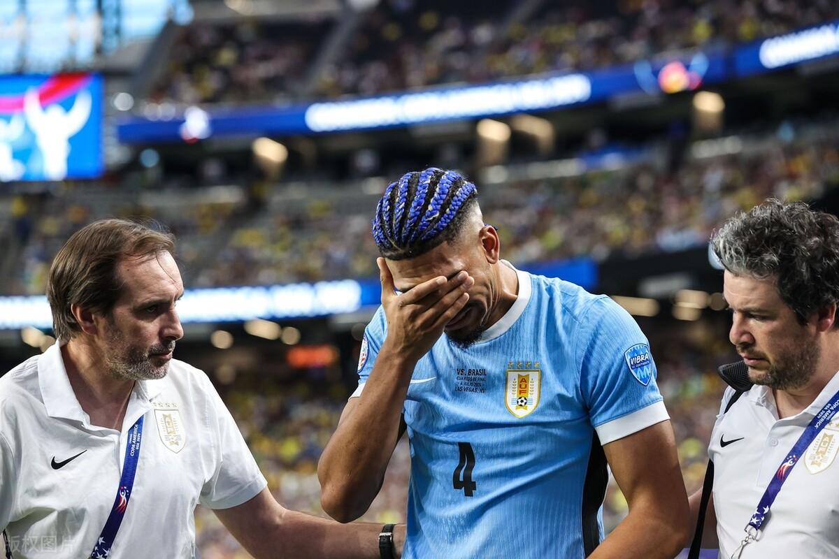 随后双方球员身体对抗频繁,比赛火药味越发浓重。第33分钟,乌拉圭后卫阿劳霍在拦截对手传中时受伤,无法坚持比赛,被希门尼斯换下。第35分钟,乌拉圭右路起球传中,努涅斯禁区中路头球攻门高出横梁。