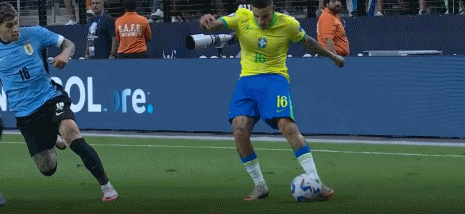 本场比赛,巴西球星维尼修斯因累计黄牌停赛,17岁小将恩德里克首发出场。比赛开场阶段场面比较平淡,第14分钟,巴西队获得禁区前沿右侧定位球,拉菲尼亚主罚直接打门,皮球击中人墙飞出底线。