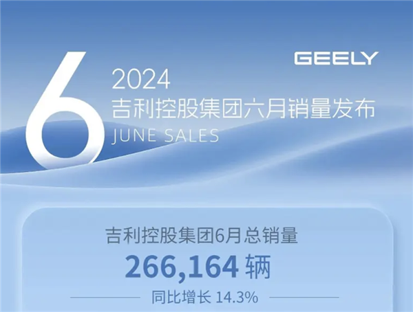 吉利汽车集团近日公布了其6月份的销售数据。根据数据显示,该集团总销量为266,164辆,同比增长了14.3%。其中,新能源汽车的销量达到了120,879辆,同比增长了53.1%,同时,新能源车型在市场中的占有率高达45.4%。