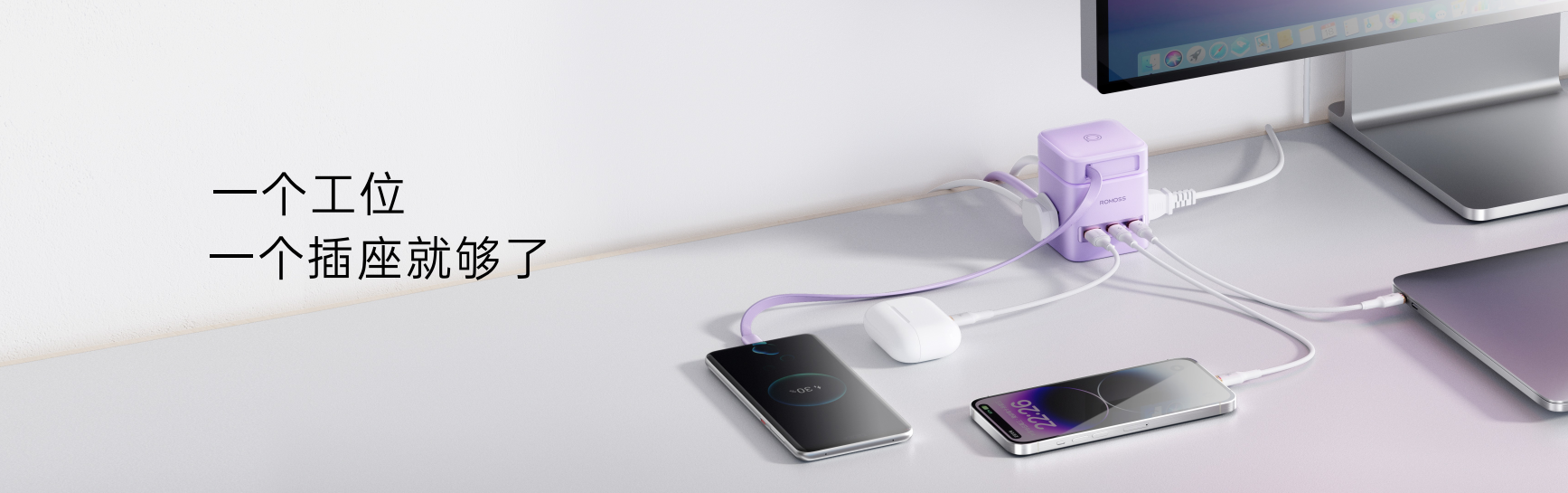 室内场景则针对场地设备的需求分为家居和办公两个类别,家居场景对大件设备的补电需求更高,尤其拥有新能源车的家庭更需要好用且安全的充电产品,为此罗马仕推出了86盒、充电桩和充电枪等产品;而在办公场景则需要的是小巧方便能够给手机电脑类产品即插即用的工具,罗马仕为其打造了小魔方插座和拉拉乐等“桌面型”充电产品。